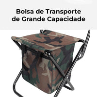 A Cadeira Essencial do Pescador e Aventureiro. Design Camuflado que garante a discrição total, com a praticidade de uma bolsa de transporte . Seu assento perfeito para a natureza.