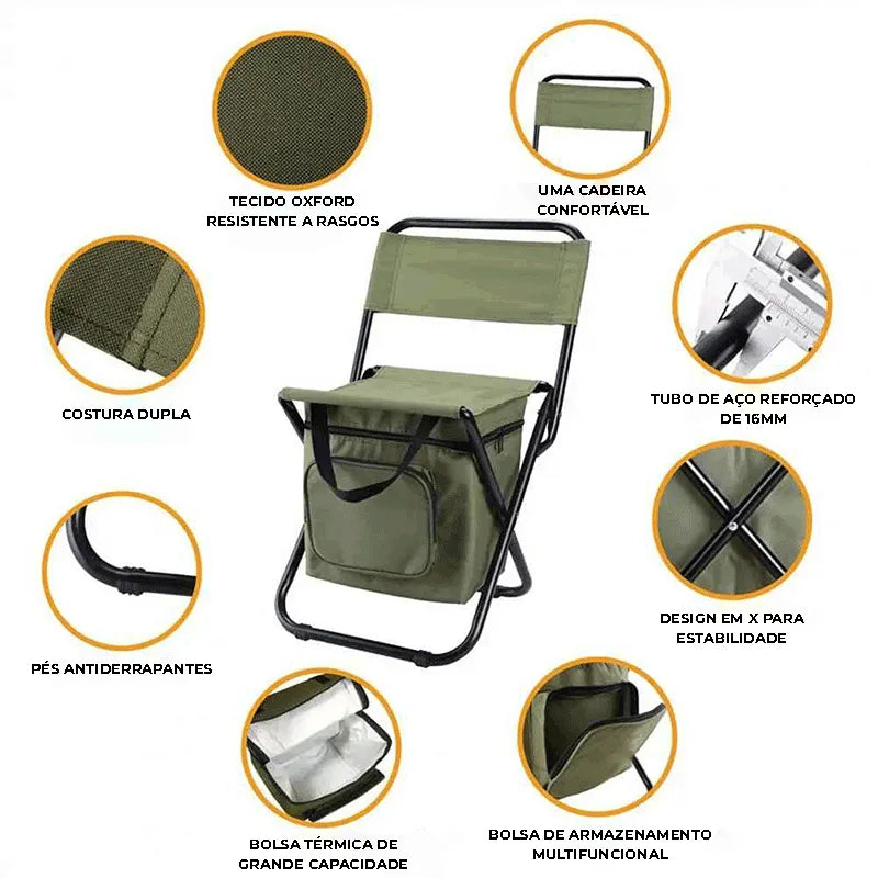A Cadeira Dobrável com Cooler Térmico une descanso e conveniência em um único produto. Ideal para camping, pesca, praia ou eventos ao ar livre, ela oferece assento confortável e compartimento térmico integrado para manter bebidas e alimentos na temperatura certa.