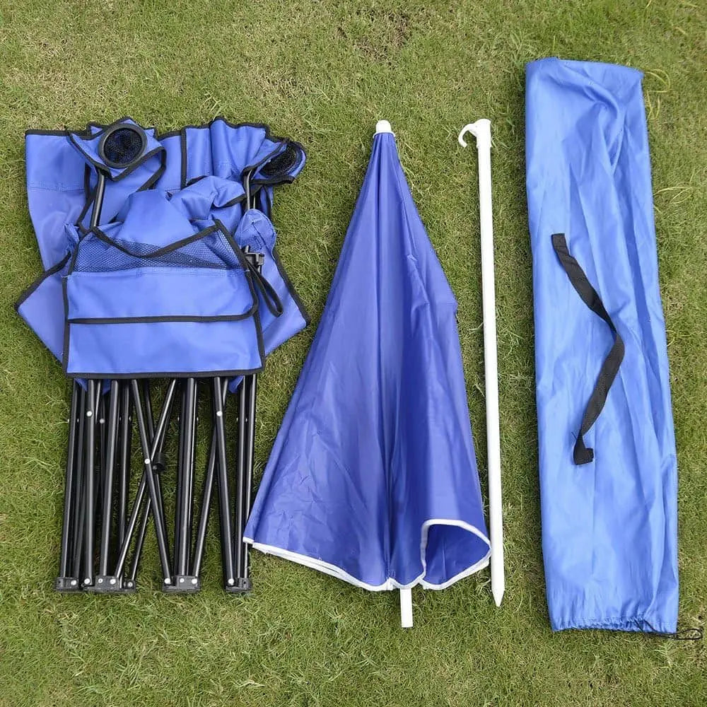 O Sofá do Seu Pôr do Sol com Geladeira. A única cadeira dobrável que une o conforto de um sofá com a praticidade do transporte. Inclui COOLER central integrado para bebidas geladas e Guarda-Sol Removível. O investimento no conforto da sua dupla, onde a aventura acontecer.