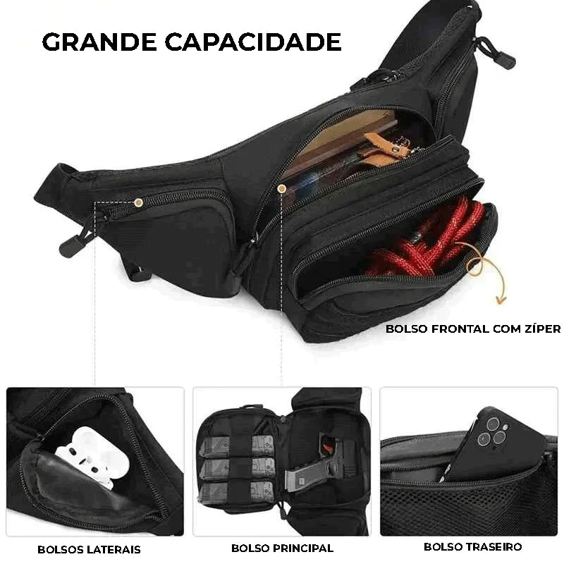 A Pochete Guardian foi feita para quem precisa de segurança e organização em movimento. Resistente à água, robusta e prática, é perfeita para aventuras, treinos ou uso urbano.